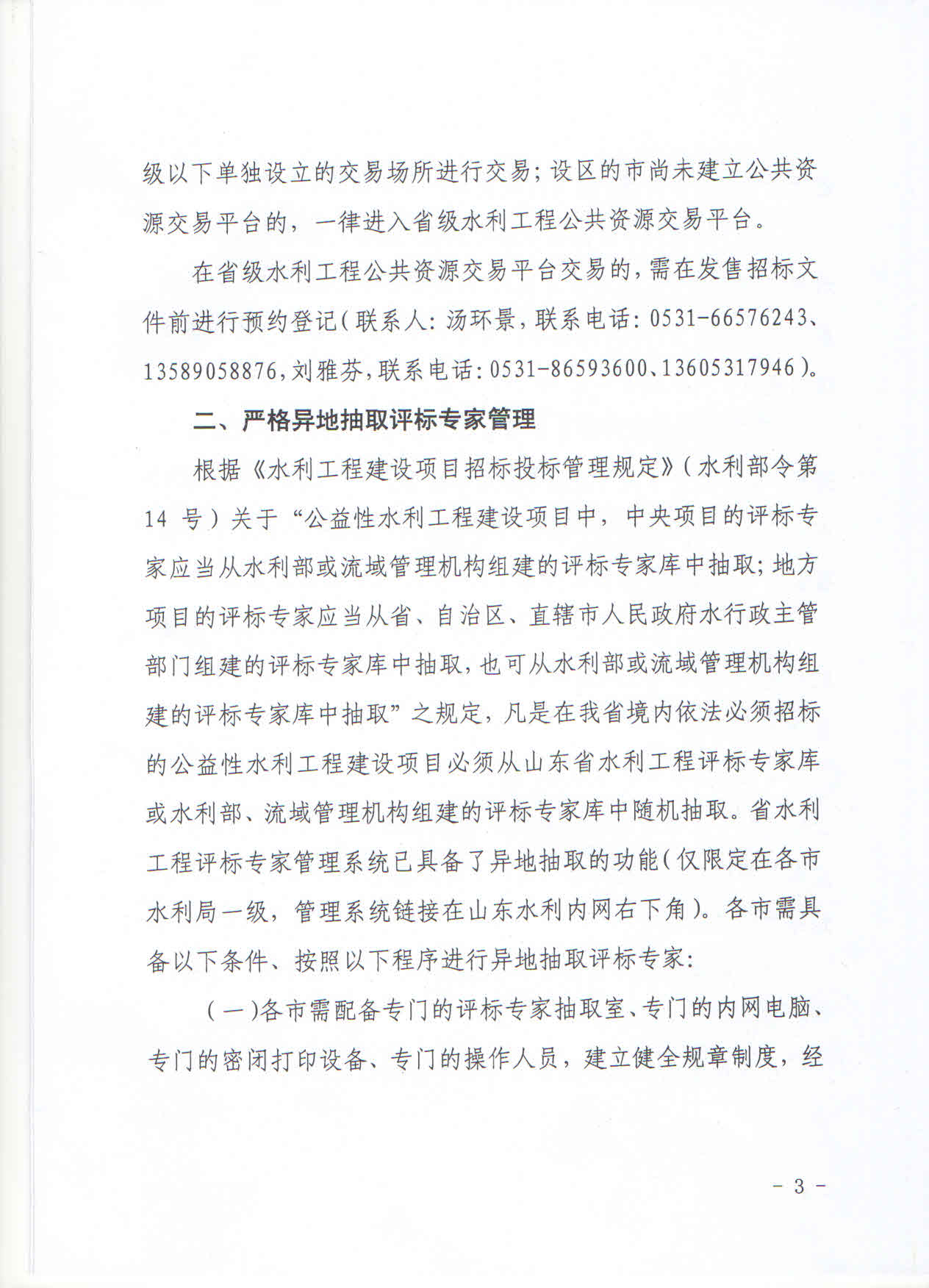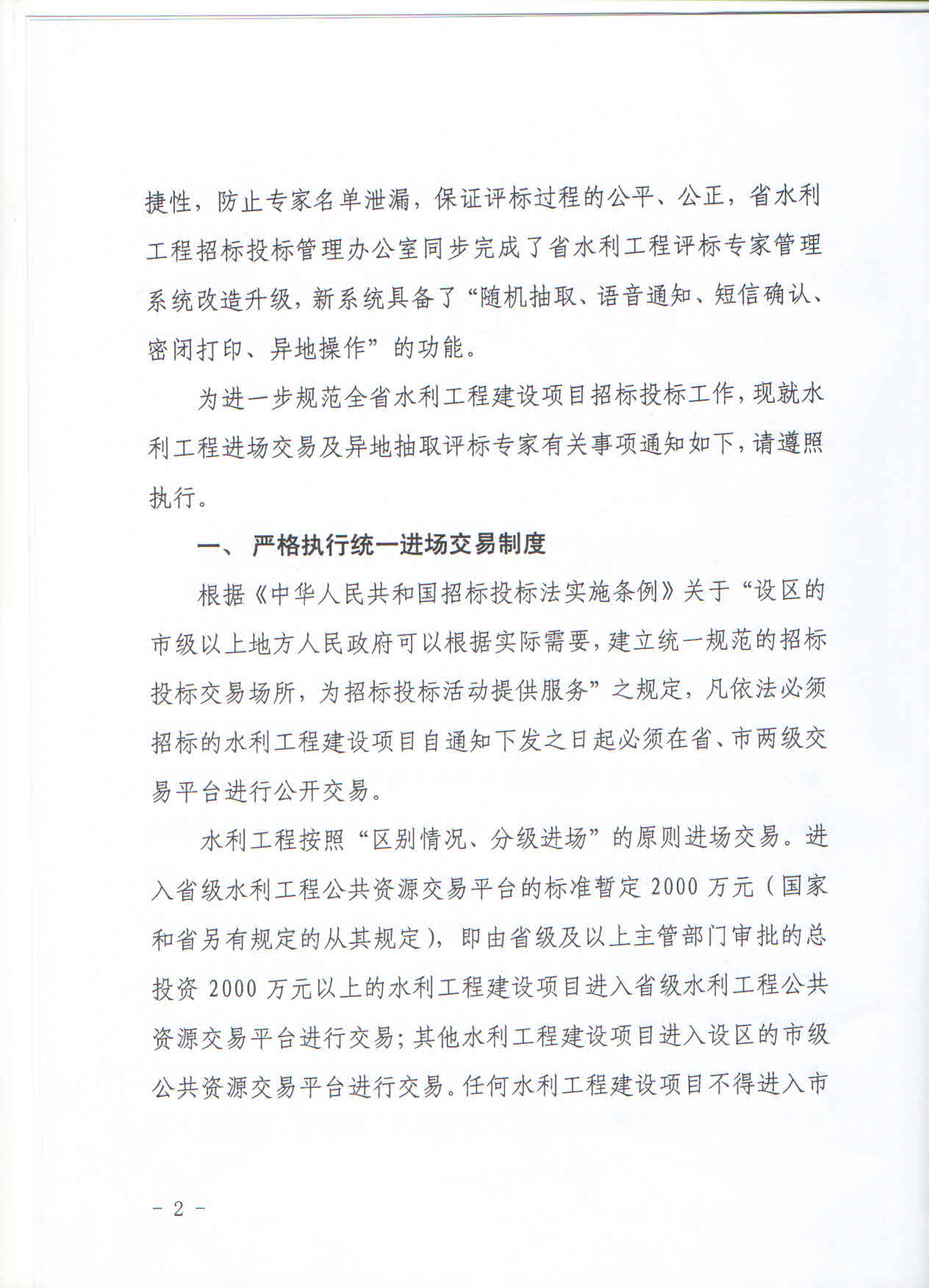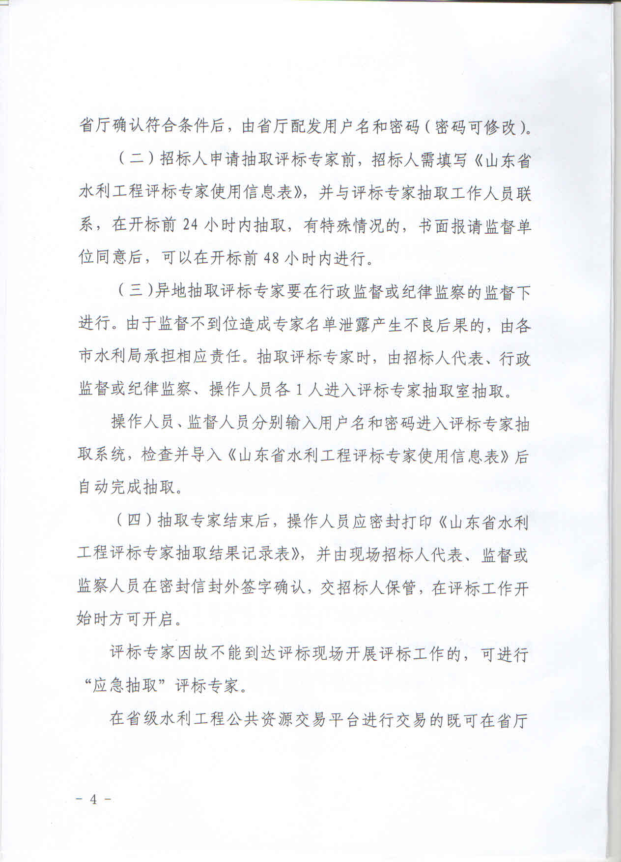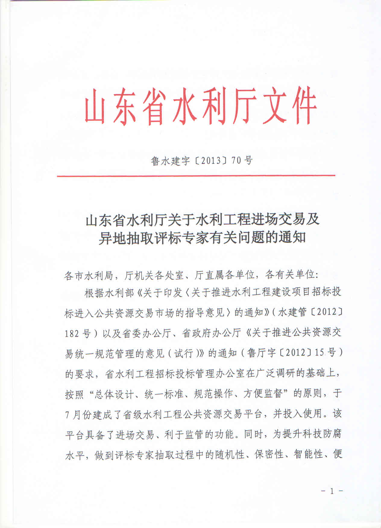 山東省水利廳關(guān)于水利工程進(jìn)場(chǎng)交易及異地抽取評(píng)標(biāo)專家有關(guān)問題的通知